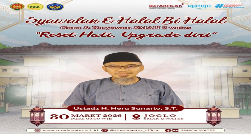 Syawalan dan Halal Bi Halal guru dan karyawan SMAN 2 Wates tahun ini mengusung tema "Reset Hati, Upgrade Diri".